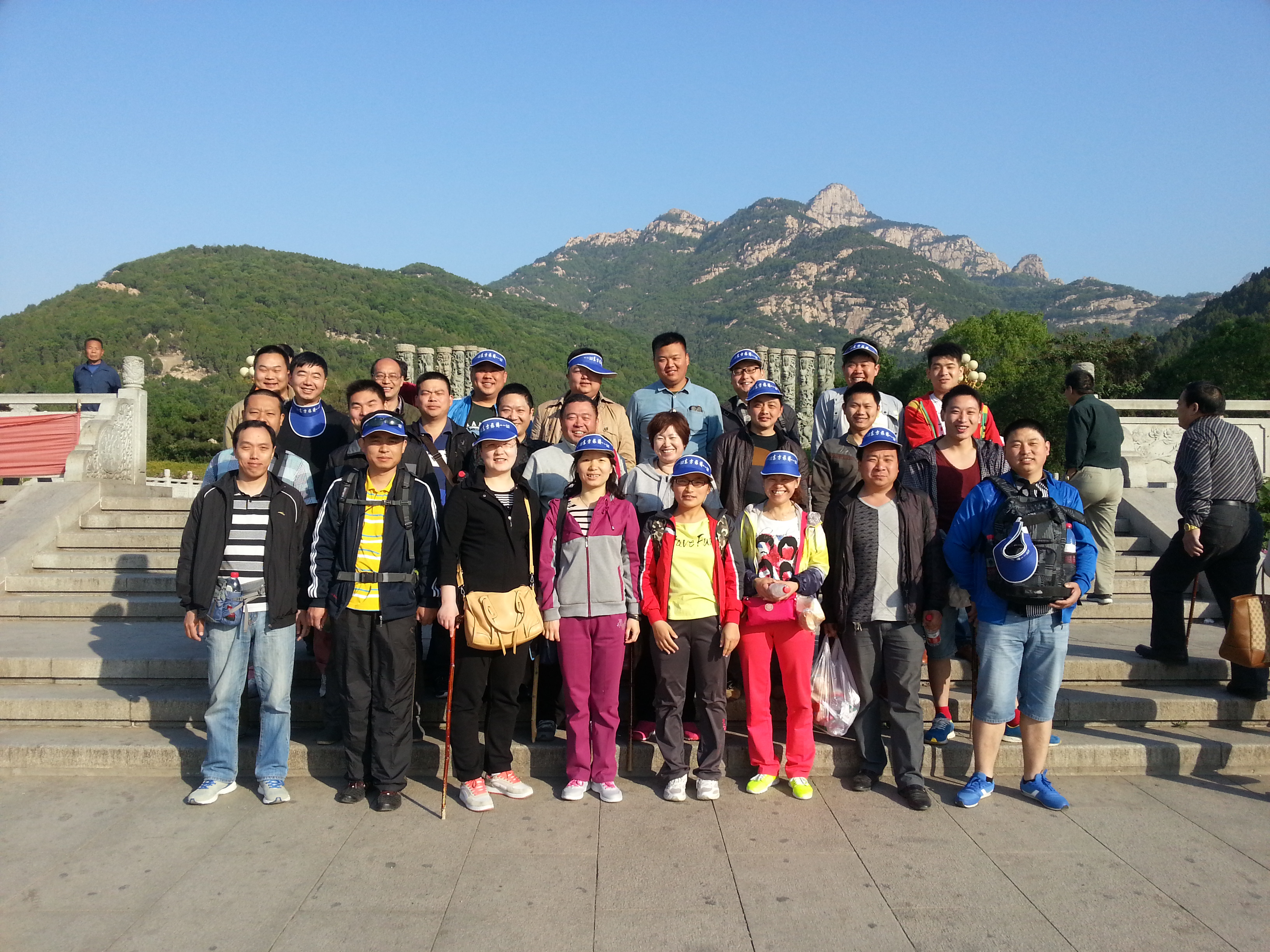 伴隨大家開懷的笑聲,幾個(gè)小時(shí)的車程之后到達(dá)我們的*終目的地泰山,在泰山山腳下向上望,只見它連綿起伏,氣勢雄偉。泰山樹木長得郁郁蔥蔥。雪白的云朵圍繞著山頂,像是給泰山戴上了雪白的絲巾。